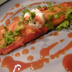 Chicken first simmers in tomatoes, chile peppers and creamy soup to seal in the flavors, gets wrapped in tortillas, and then bakes in that same stew. Top with enchilada sauce and Cheddar. You'll need to marinate the chicken in your favorite marinade before cooking begins!